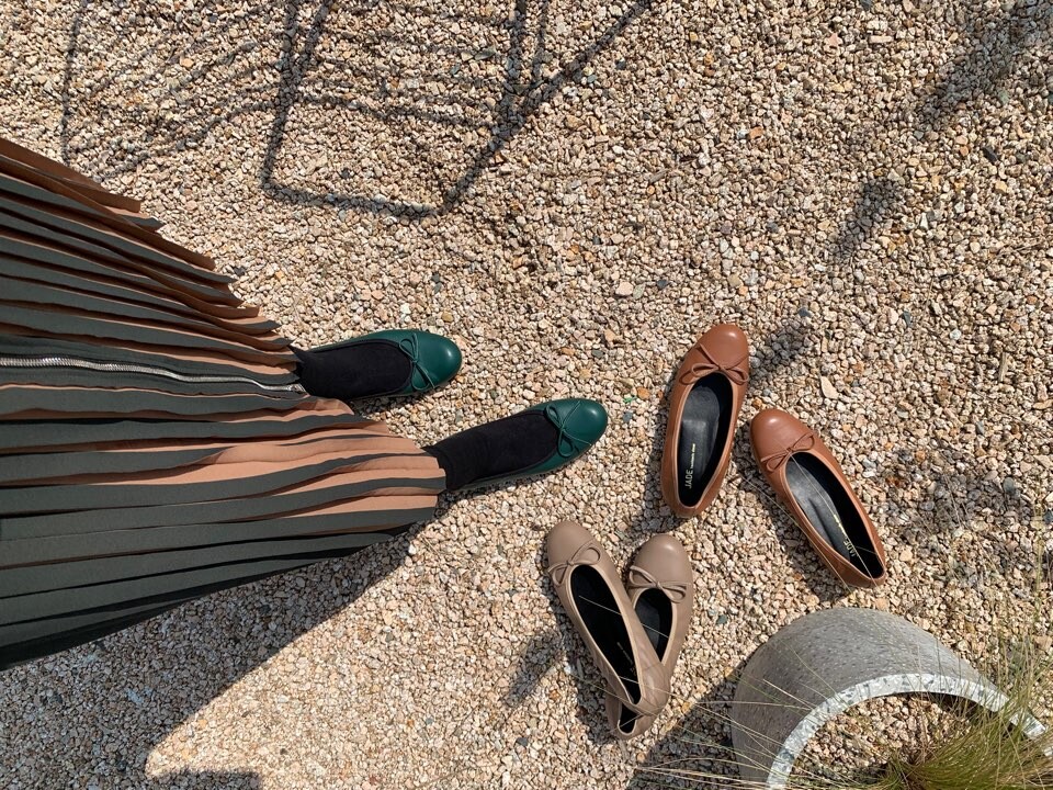 리본 플랫슈즈는 고급 천연 쉽스킨과