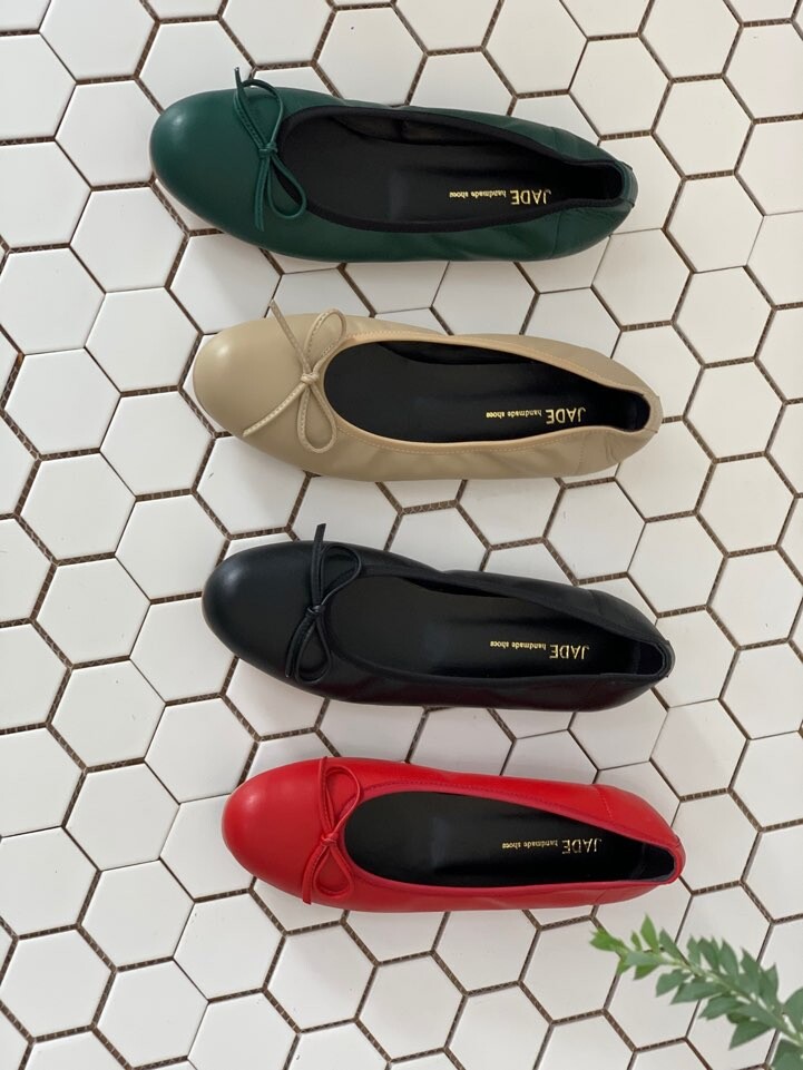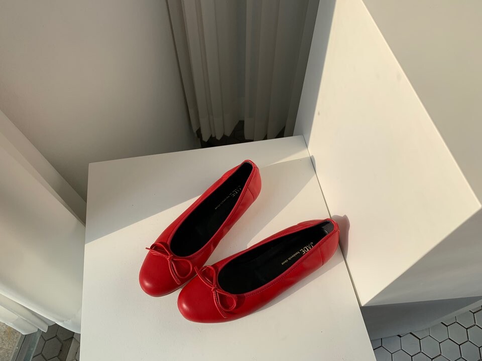 리본 플랫슈즈는 고급 천연 쉽스킨과